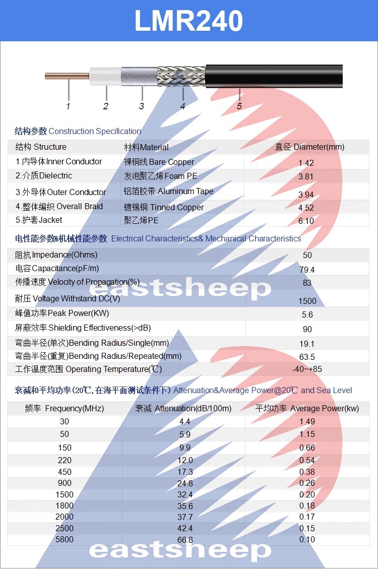 東方旭普 同軸射頻線纜 LMR-240 (相當于50-4)室內外覆蓋常用
