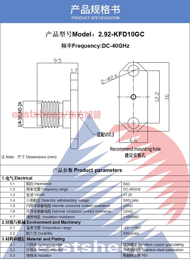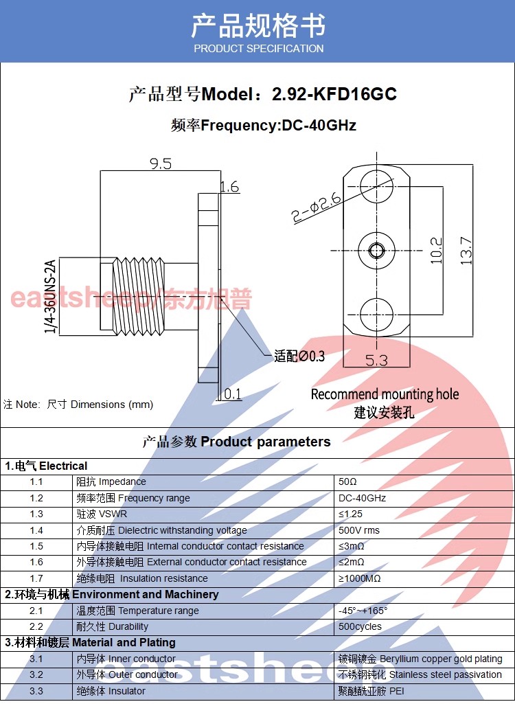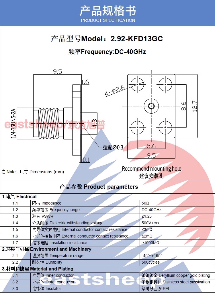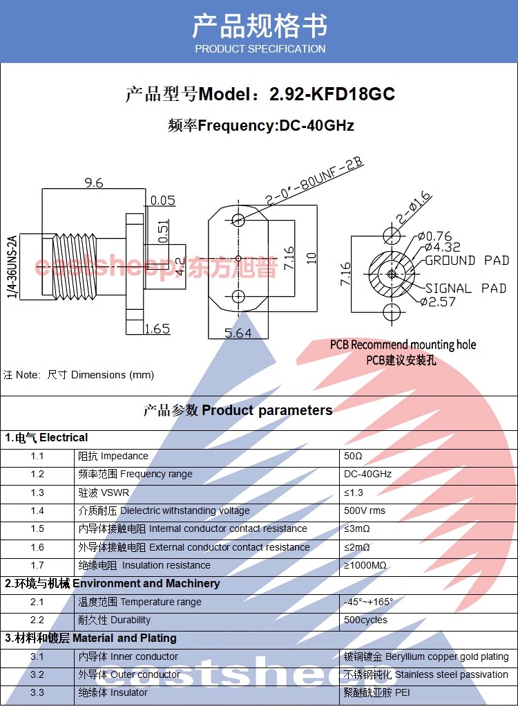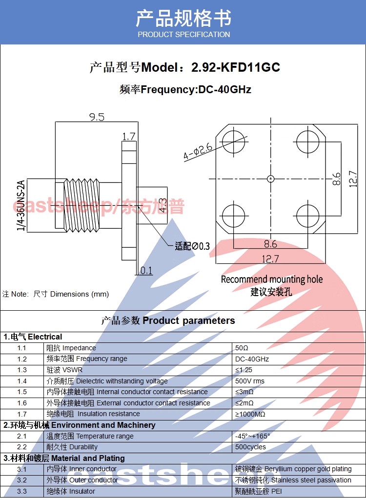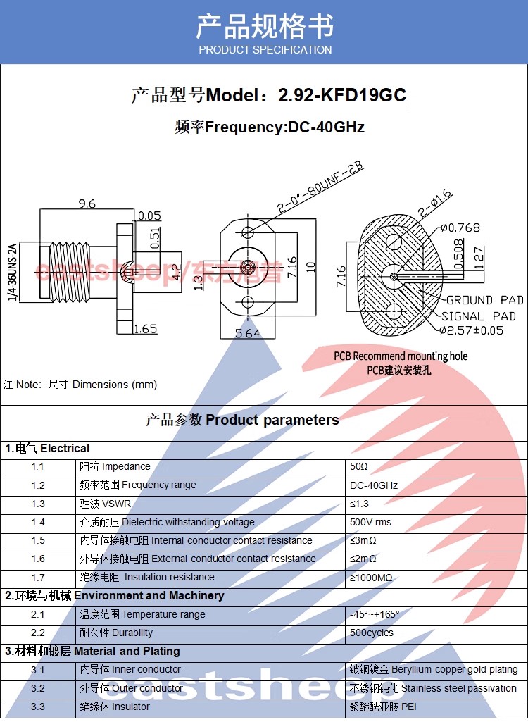 | 2.92-KFD10GC | 2.92母頭 適配0.3玻珠 2孔微帶連接器 |