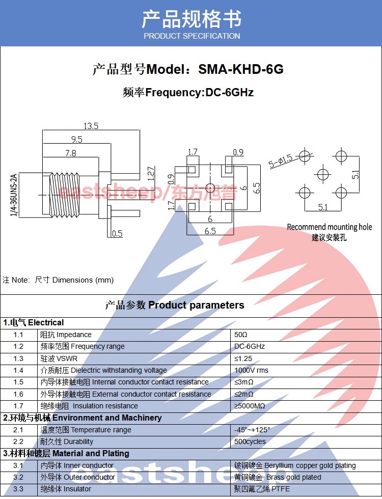 | SMA-KHD-1 | SMA母頭 PCB板固定天線底座 |