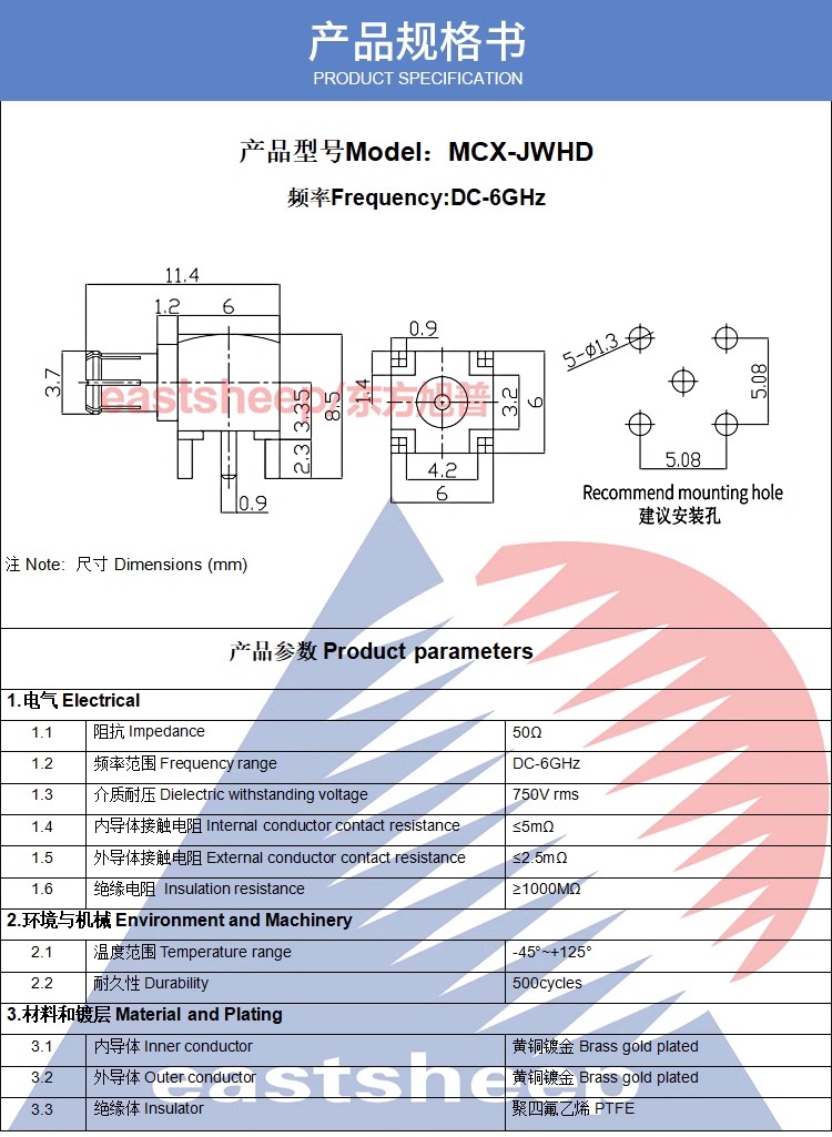 | MMCX-JHD | MMCX公 PCB印制板插座 |