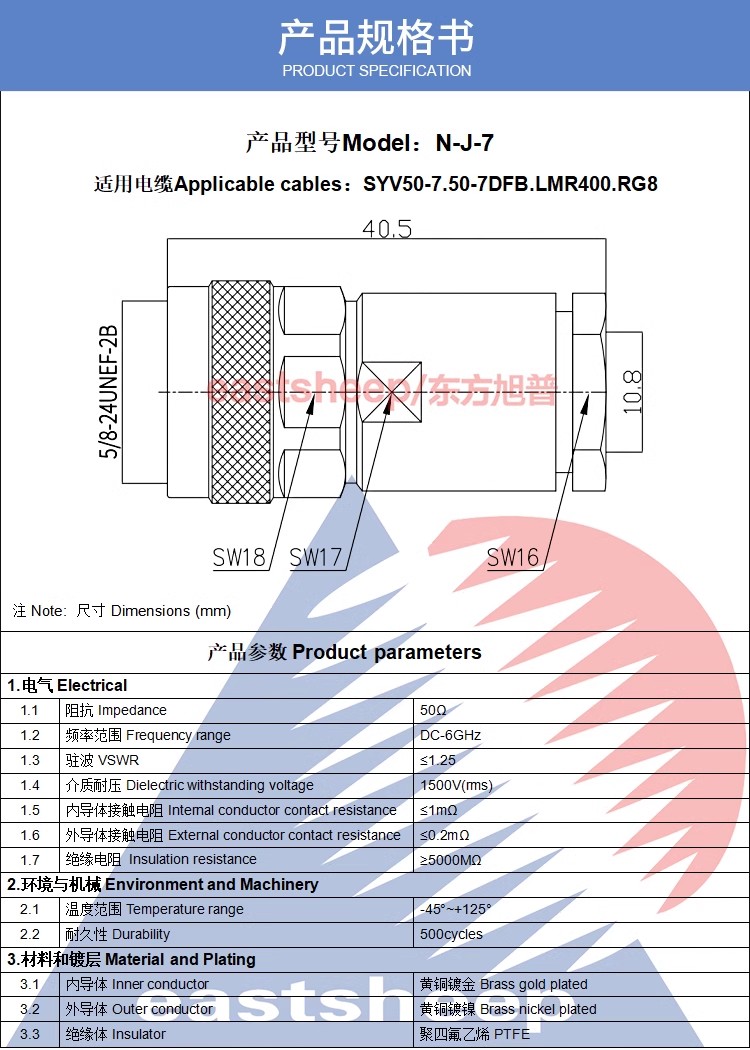內針焊接 適用SYV50-7/LMR400/RG8線 |