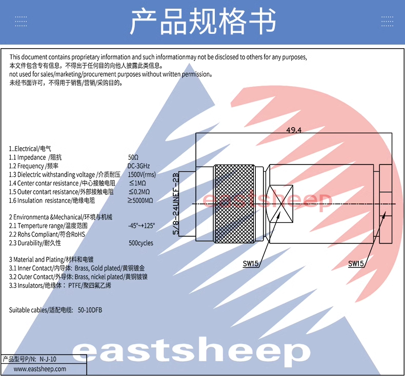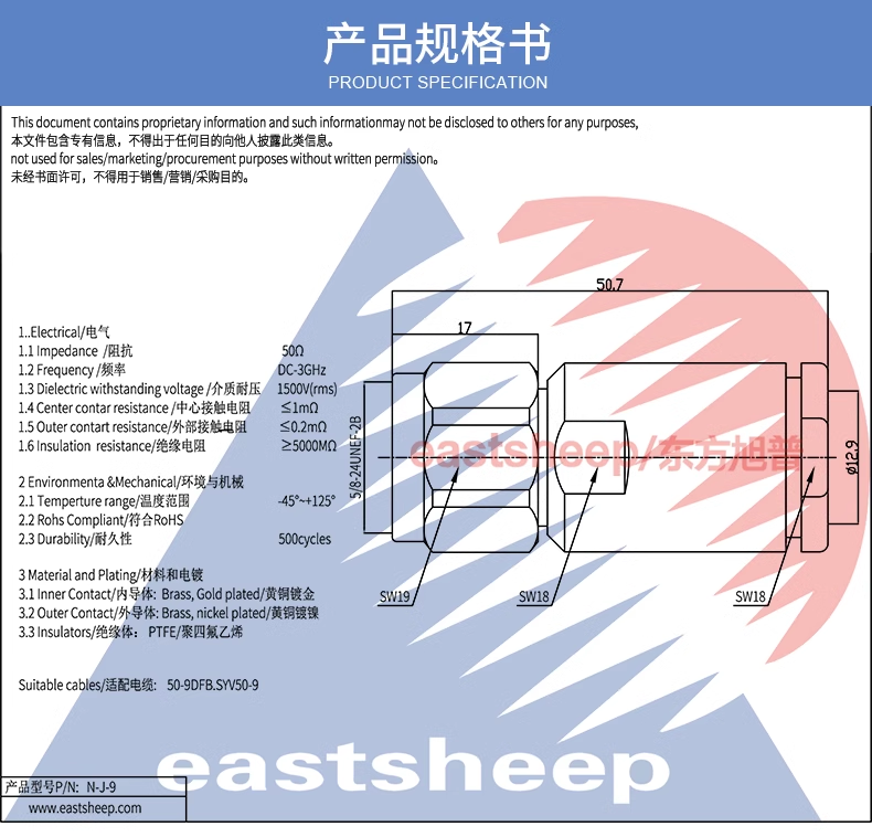焊接型 適用50-9DFB/SYV50-9線纜 |