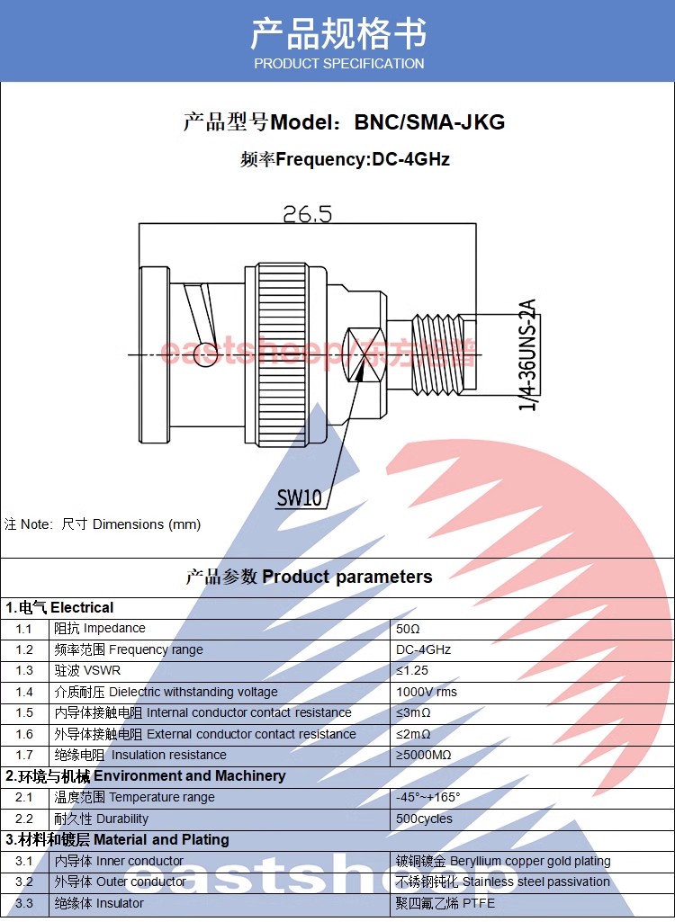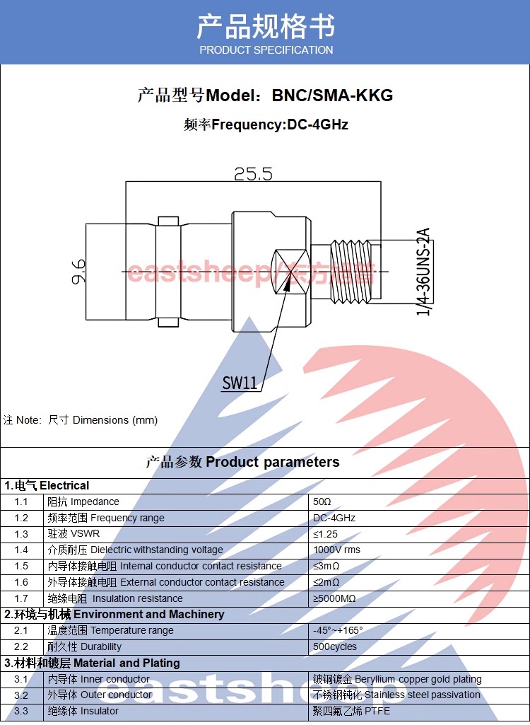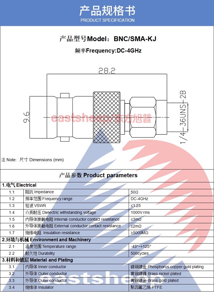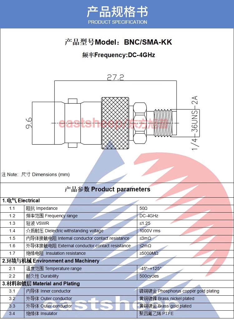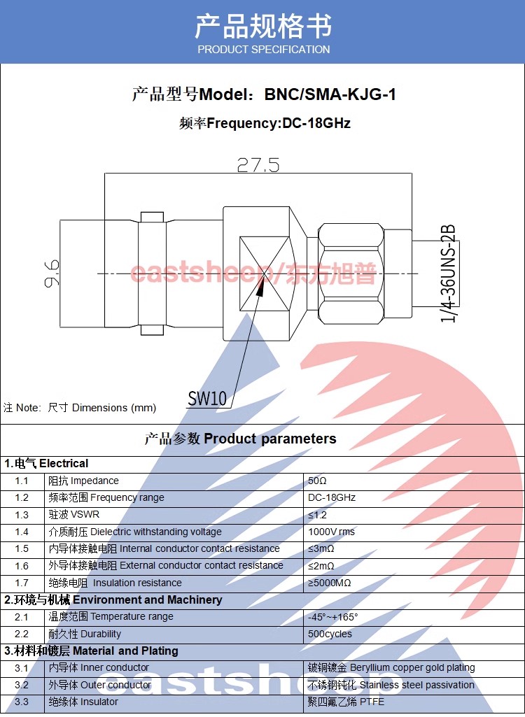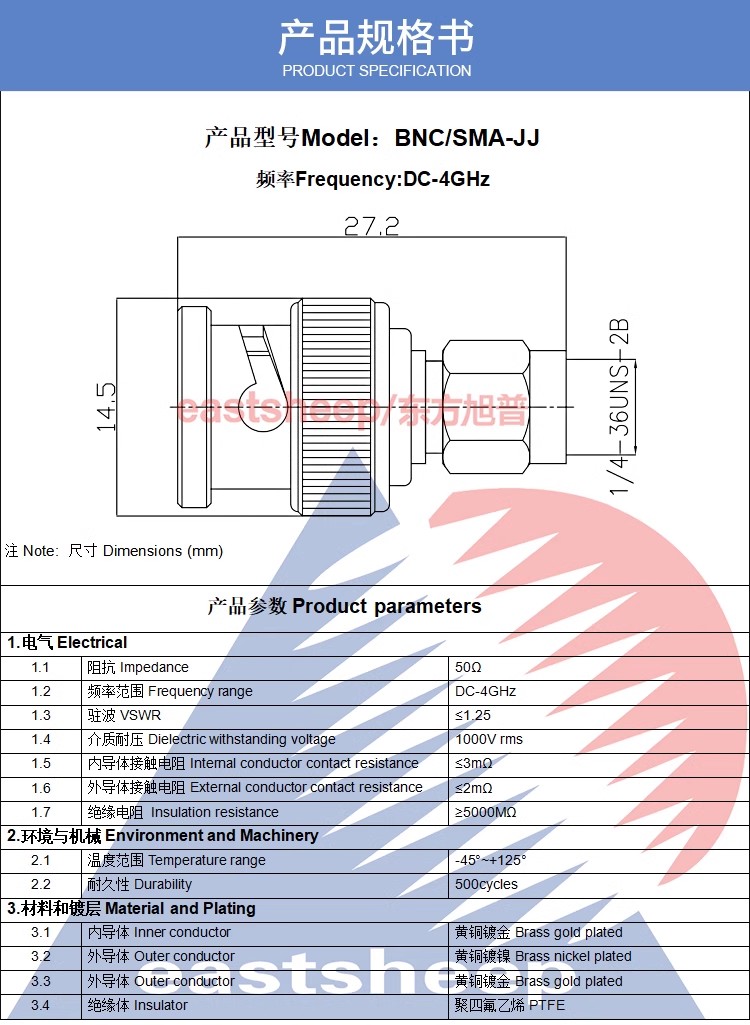 BNC母—SMA母 | DC-4G | ≤1.25 |