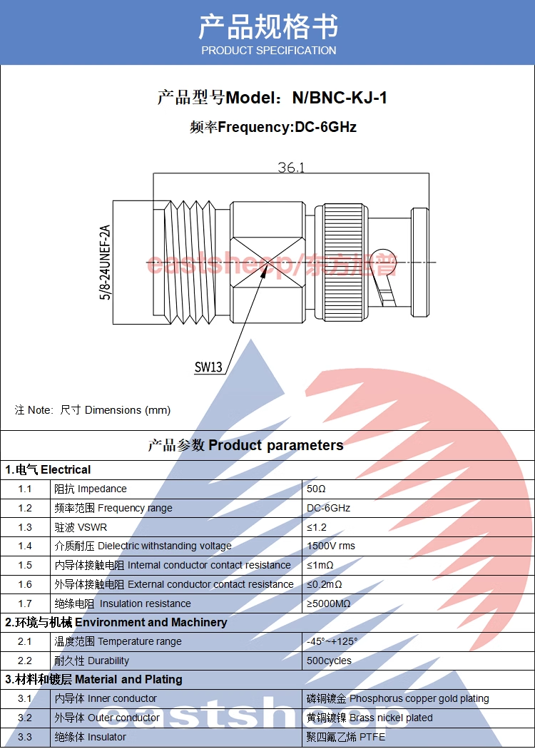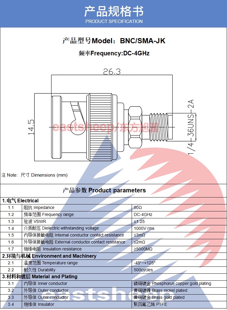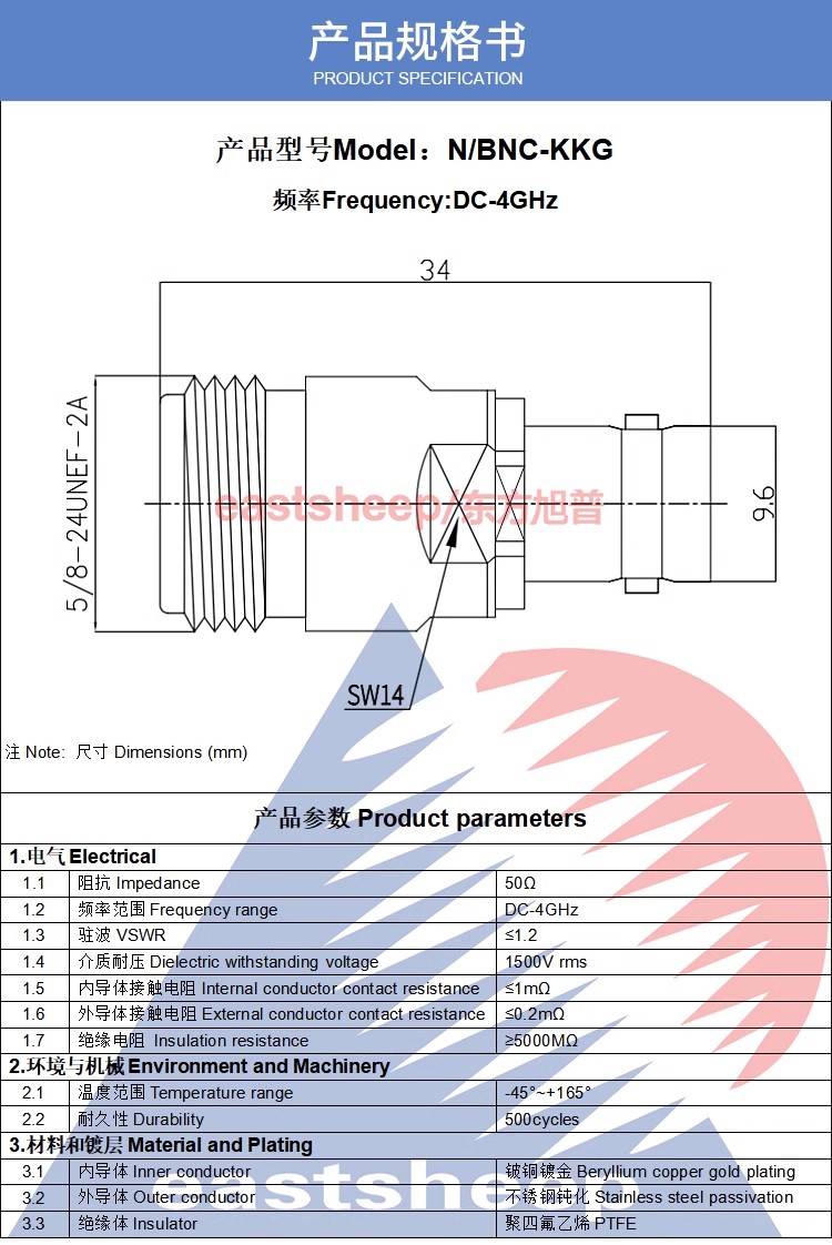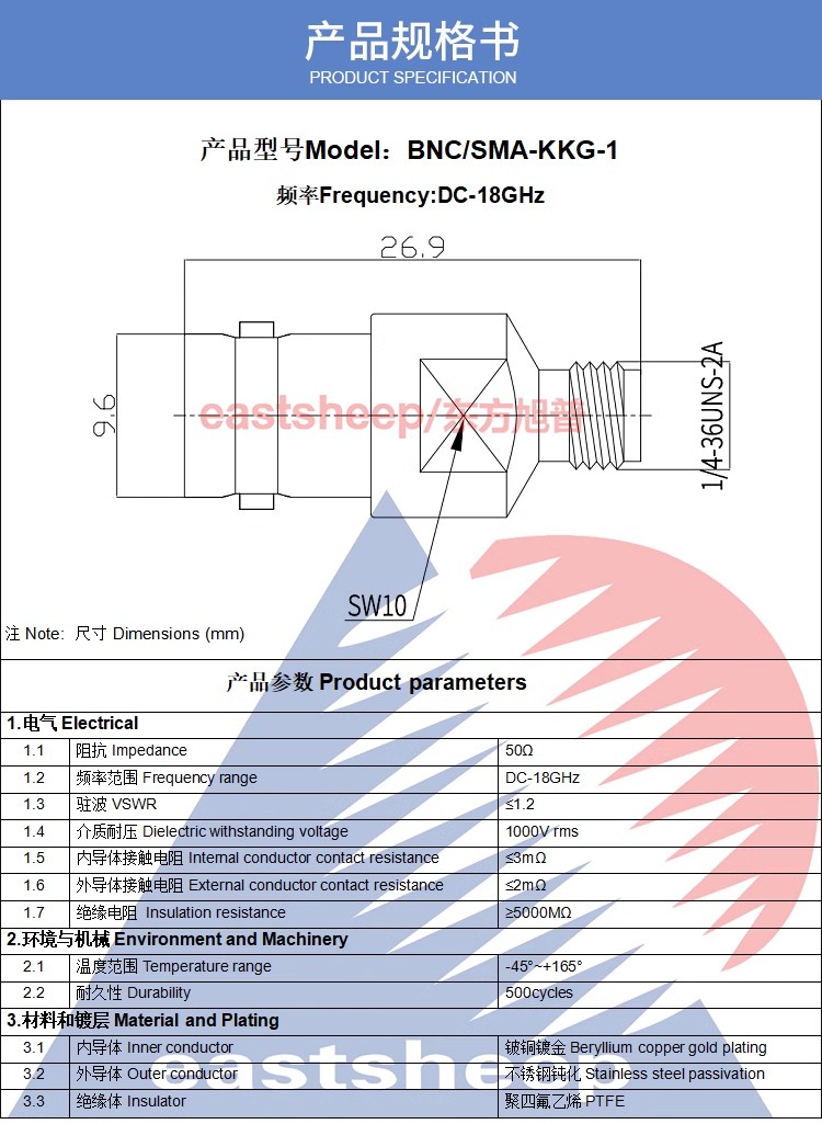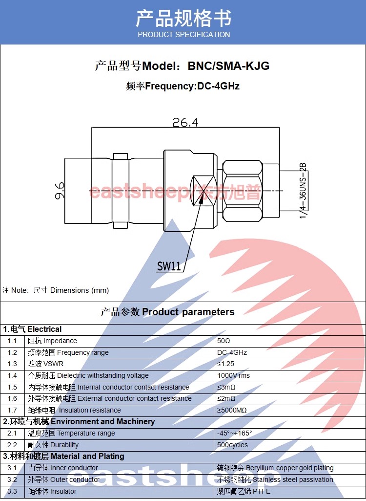 BNC母—SMA母 | DC-4G | ≤1.25 |