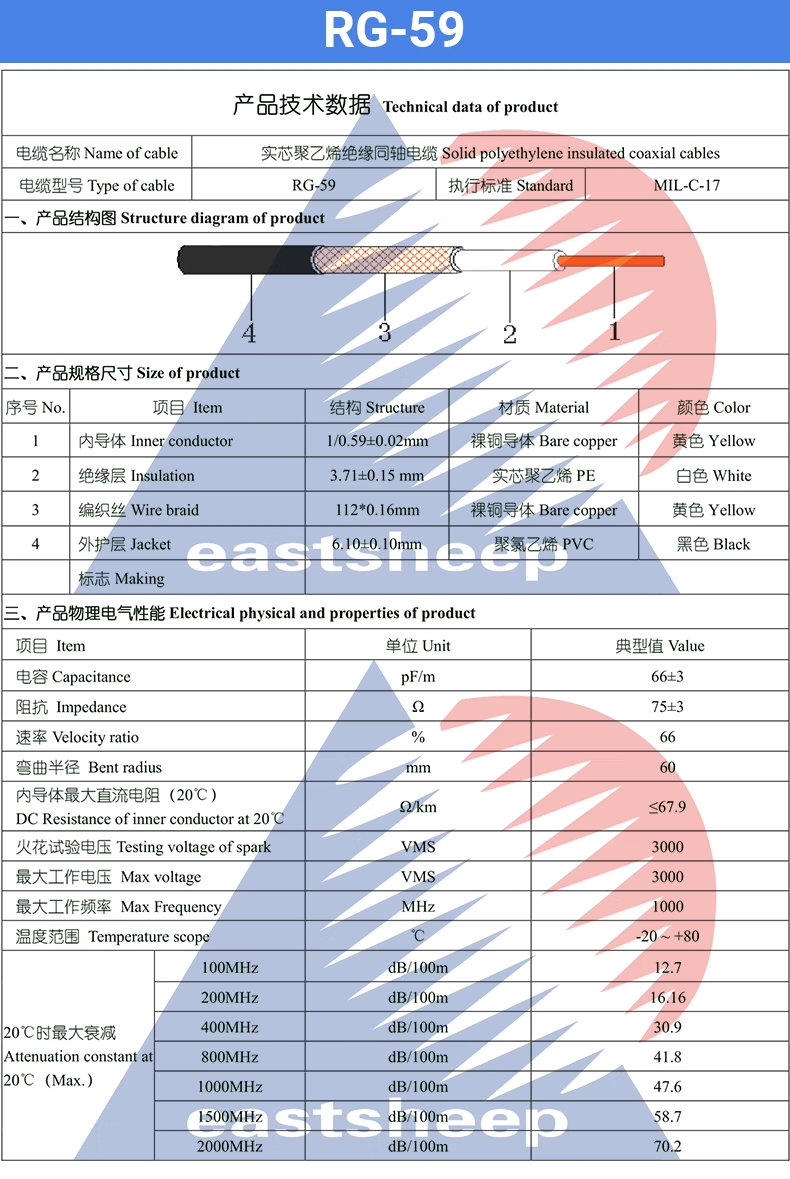 東方旭普 射頻連接線 RG59/U 75-4 系列線纜 適用于高壓BNC接頭