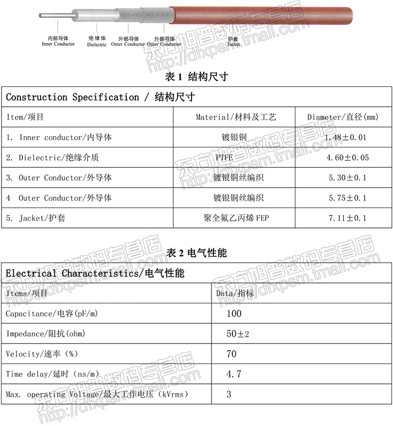 高溫高頻同軸電纜SFF50-5-2 雙層屏蔽特氟龍鍍銀電纜(棕色)
